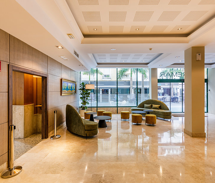 El Hotel Torremar cuenta con unas instalaciones muy recomendables para el descanso y el relax en Málaga. Dispone de una amplia terraza solárium con hamacas, restaurante buffet con show-cooking, snack- bar cafetería, acceso a Internet Wi-Fi gratuito y un aparcamiento privado. ¡Desconecte de la rutina y disfrute del centro de Torre del Mar!